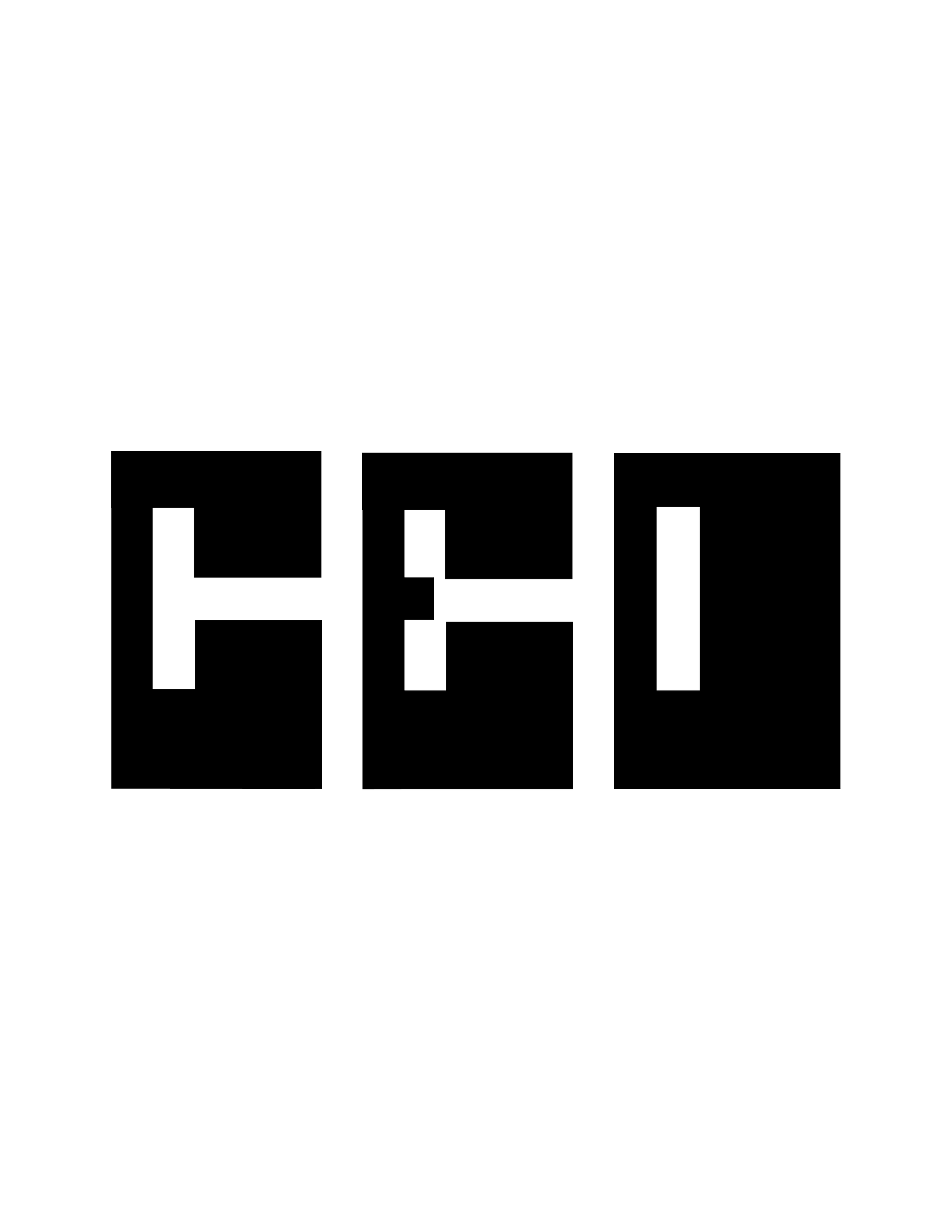 The Bitmap Monogram project introduced the creation of a cohesive letterform system that utilizes a grid to configure structure. Since I was not given a middle name, I was able to choose a letter that felt fitting within my initial sequence. The monogram I developed exhibits high contrasting, blocky letterforms that embody the general reaction to the abbreviated letters CEO. Through countless variations of these letters, I produced an engaging systematic sequence of letters that accurately encapsulates this monogram.